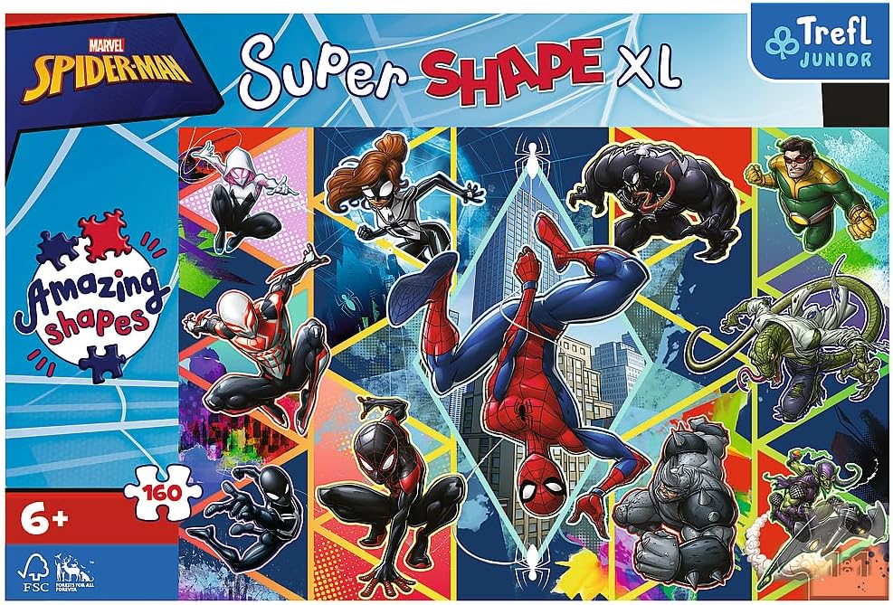 بازل أطفال بتصميم مميز لشخصية Spider-Man، مكوّن من 160 قطعة بأشكال متنوعة (Amazing Shapes) وحجم XL لسهولة التركيب. يساعد على تنمية التركيز، التفكير المنطقي، والمهارات الحركية الدقيقة، ومناسب للأطفال من عمر 6 سنوات.